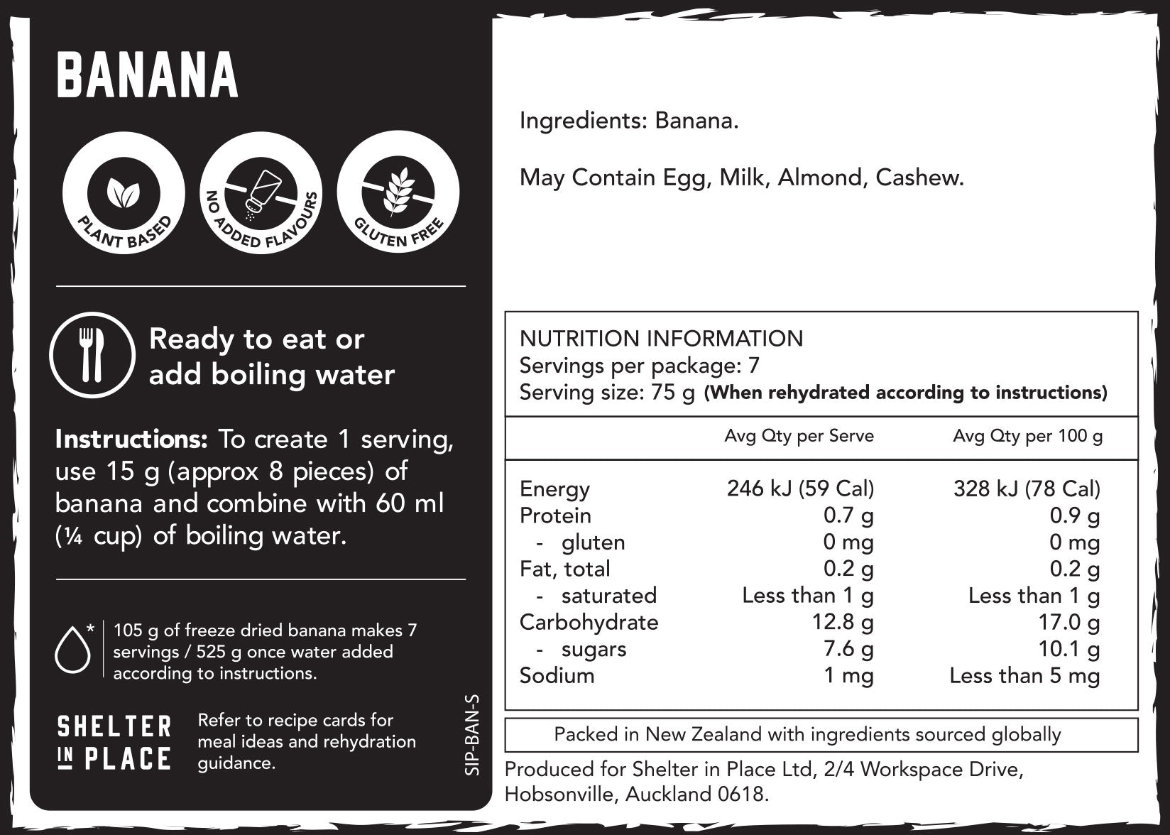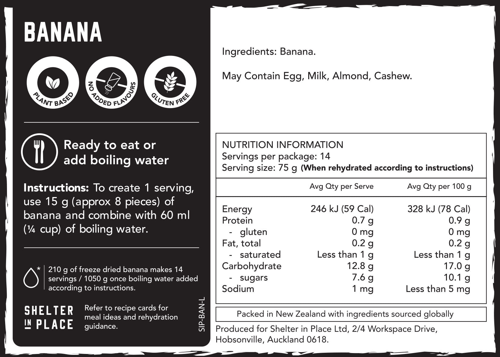 Crunchy and sweet sliced banana. Nothing else. 100% versatile - use as a core ingredient in cooking, baking or healthy, long-lasting snack. Perfect for all age groups and diets - gluten-free, dairy-free, vegan. Available in two sizes 105g or larger 210g packs.