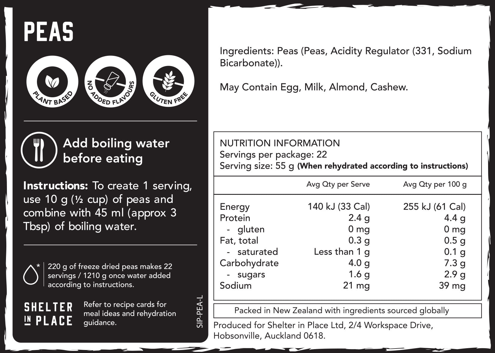 Our freeze-dried whole peas are harvested at peak freshness, giving you year-round access to seasonal goodness. Perfect as a core ingredient or even snack. Gluten-free, dairy-free, vegetarian, and vegan, available in 110g or 220g packs.